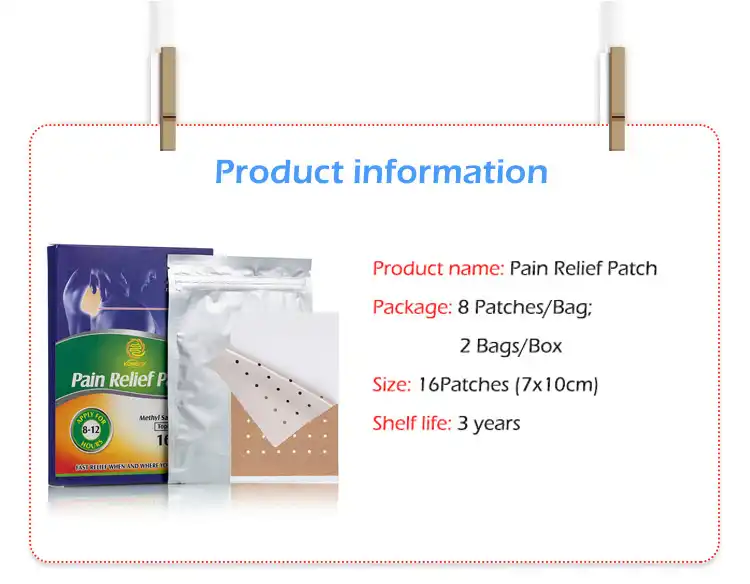 Notre Patchs pour les maux de dos sont conçus pour fournir soulagement rapide et durable pour les maux de dos, les raideurs musculaires et les tensions. Infusé d'un mélange ingrédients naturels à base de plantes et thérapie par la chaleur apaisante , ces patchs aident à améliorer la circulation sanguine, à détendre les muscles et à réduire l'inflammation. conception douce pour la peau et respirante assure un ajustement sûr, offrant jusqu'à 12 heures de soulagement continu, parfait pour une utilisation quotidienne ou après une activité physique intense.