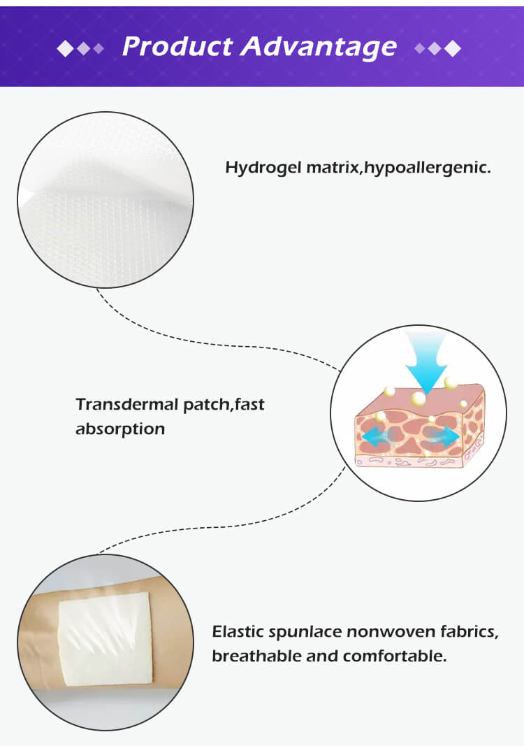 Emballage : 1 patch/sachet en aluminium, 30 sachets/boîte (emballage personnalisé disponible)